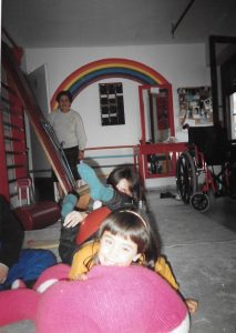 Cuando terminaba, me llevaban a una sala con juguetes. Allí estaba Jesús, mi amigo. Era unos 2 años más mayor que yo y no llegó a cumplir los 10, según me contaron. Simplemente un día dejó de venir. Sí, había juguetes, pero no para jugar como queríamos… ejercicios y más ejercicios. Hasta recuerdo a una fisio (a la cual tenía miedo), que aunque no estuviera trabajando con ella, si me veía por el pasillo me gritaba:“Señorita, los pies planos”. Yo tenía 5 años, era algo que me aterrorizaba. Yo sólo quería que me dejaran jugar.